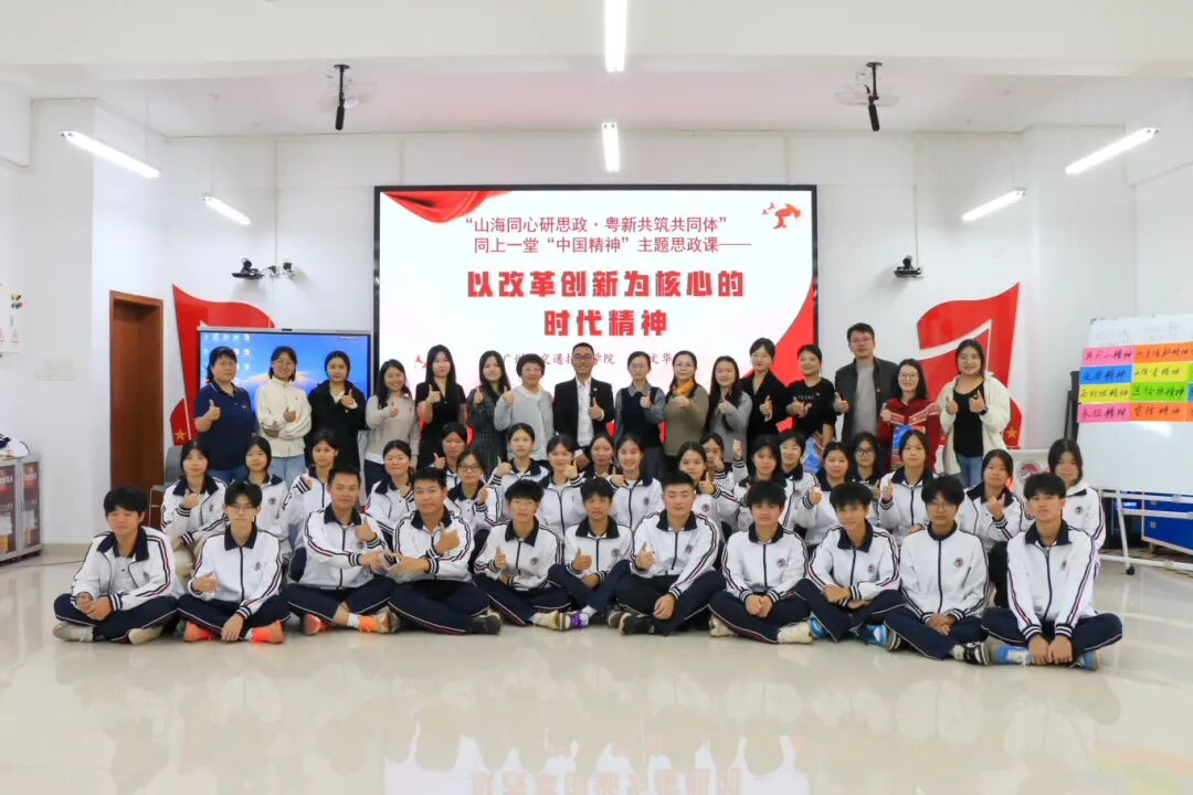 本次思政课以《中国特色社会主义》课程为内容基础,聚焦中国精神内涵要义,结合粤新两地发展特色与技工教育实践,通过线上连线实现两地师生共研共讲、同频共振。