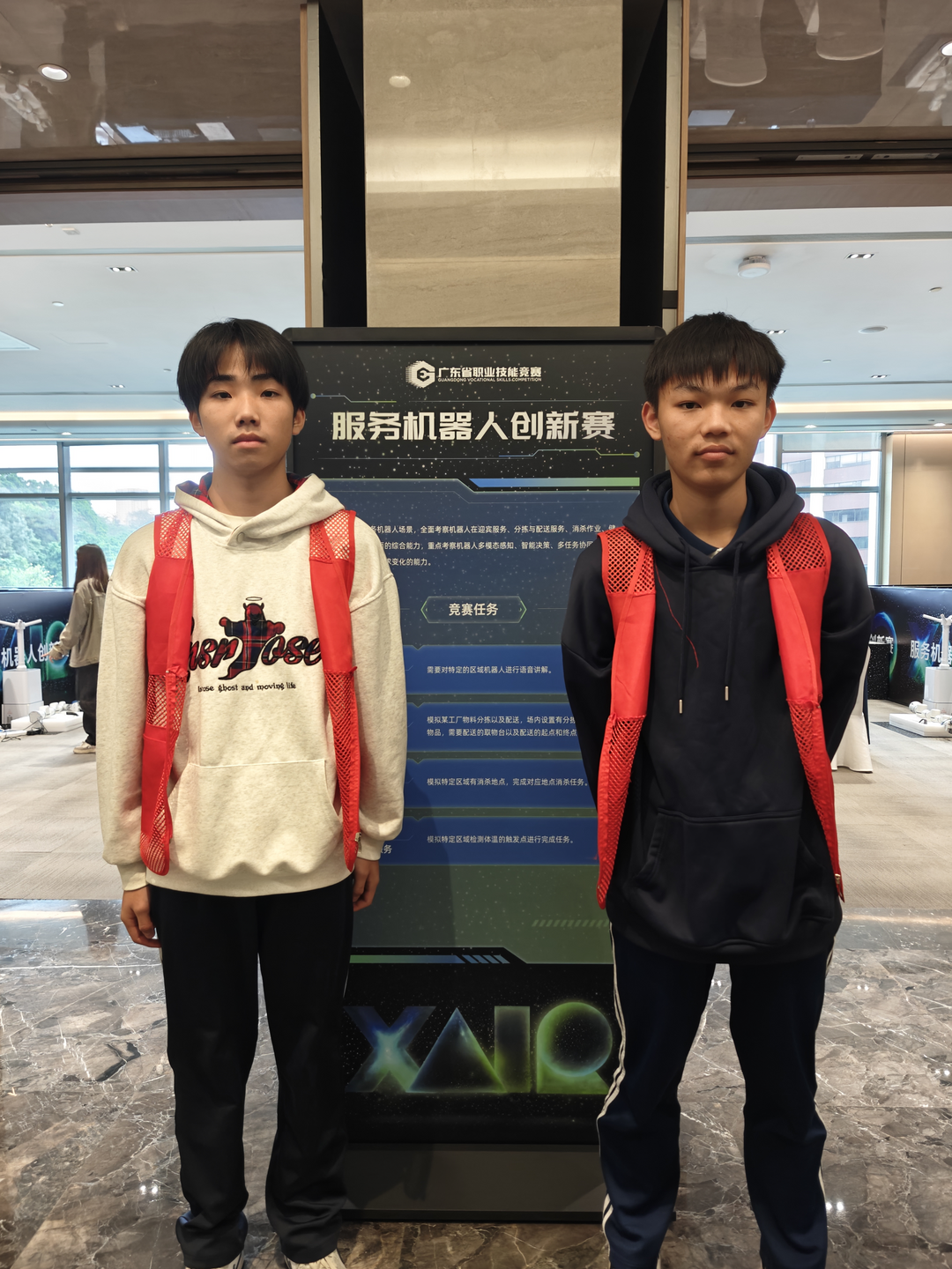 在竞争激烈的服务机器人创新赛中,学院参赛学子谭杰龙、钟逸辉、何立城面对的是对机器人多场景适配能力的严苛考验。该赛项重点评估机器人在迎宾接待、物品配送、环境消杀等多元化服务场景中的感知决策与多任务协同能力,要求参赛作品不仅能完成基础服务任务,更需具备场景创新与技术突破。服务机器人的稳定性、交互流畅度与功能实用性是核心评分维度,学院团队参赛作品凭借贴合实际需求的功能设计,在众多参赛队伍中崭露头角,最终斩获三等奖。