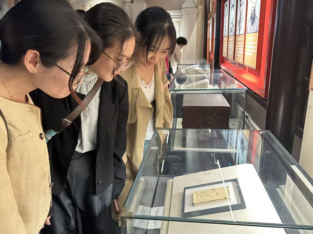 参观过程中,全体人员放慢脚步,驻足凝视,仔细品读每段文字,不时就展陈内容低声交流感悟。展览展出了30多件展品,讲述中国人民抗日军政大学(简称“抗大”)从创建到发展的历程。抗大的教材与刊物,字里行间满是“团结、紧张、严肃、活泼”的校风,是革命先辈以笔为枪、播撒救国火种的见证;泛黄的手稿、书信、纪念章,藏着黄埔师生的赤子丹心,一笔一画皆是舍生取义的誓言;外国友人的纪实作品,则以第三方的视角,为日军的侵略暴行留下铁证,也让中国军民浴血抗敌的不屈精神跨越国界、震撼人心。大家仿佛穿越时空,置身于那个烽火连天的年代,深切感受到革命先辈们为民族独立和人民解放,不畏牺牲、奋勇向前的崇高精神,深刻体会到黄埔精神与抗大精神交融共生的强大力量。