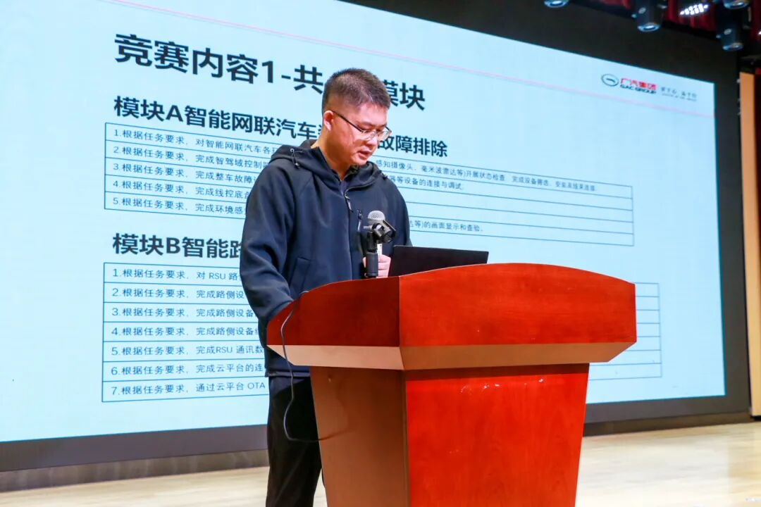 本次活动由学院竞赛中心与学生工作处联合主办,各产业系师生、项目教练及选手积极参与。广汽集团孙庆勇先生、王志伟先生,学院竞赛中心副主任余景鸿、学生工作处胡海铭老师,以及第三届全国技能大赛金牌选手刘铠文同学等嘉宾出席。