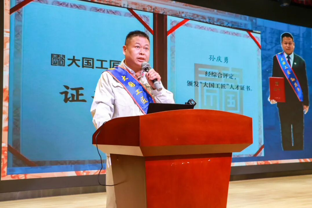 压轴登场的是享受国务院特殊津贴、荣获“大国工匠”称号的广汽丰田孙庆勇。他以《一位车身制造大国工匠的成长之路》为题,深情回顾了自己从农村走出,历经汽车维修、焊装岗位磨练,最终成长为受总书记接见的大国工匠的奋斗历程。他强调高标准、严要求是企业生存与个人成长的基石,并以铝板技术攻关为例,展现了技术工人“把关键技术牢牢抓在自己手里”的责任担当。他勉励师生不怕吃苦、不畏艰难,以实干成就梦想,以技能奉献国家。