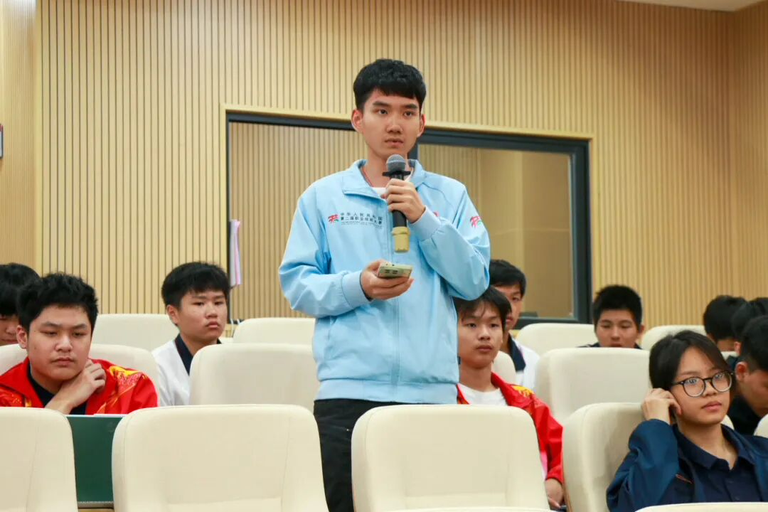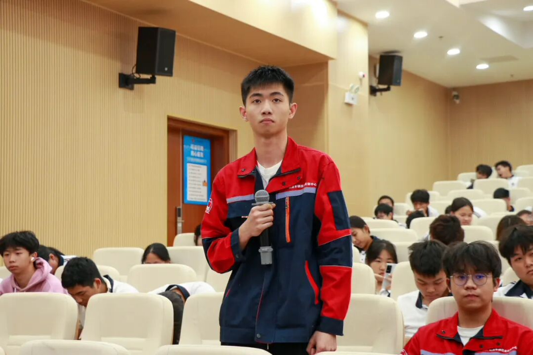 在互动交流环节中,同学们踊跃提问,围绕技能学习、竞赛经验与职业发展等话题,与“大国工匠”孙庆勇进行了深入交流,现场气氛热烈。孙老师的分享在同学中引发强烈反响,“平凡岗位成就非凡”的奋斗精神令师生深受触动,特别是“关键技术要牢牢抓在自己手里”的深刻见解,让同学们深刻认识到技能学习不仅关乎个人前途,更关系到国家发展大局。