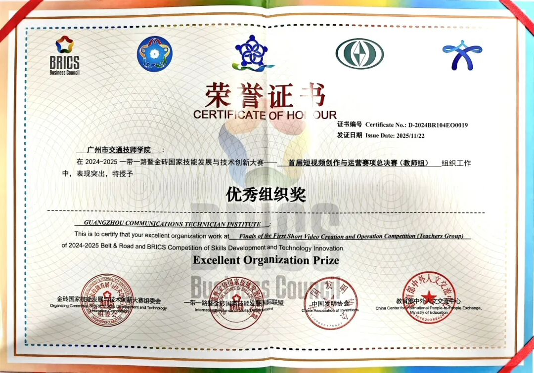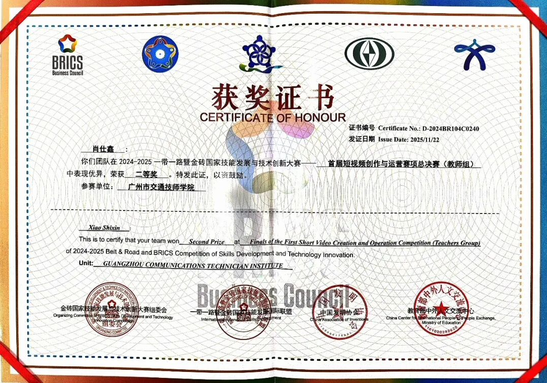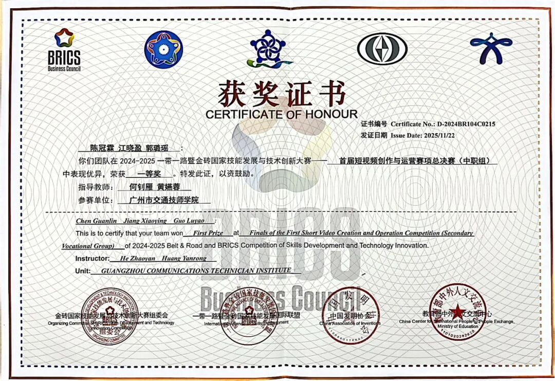 交通师生在2025一带一路暨金砖国家技能发展与技术创新大赛——首届短视频创作与运营赛项国际总决赛斩获佳绩