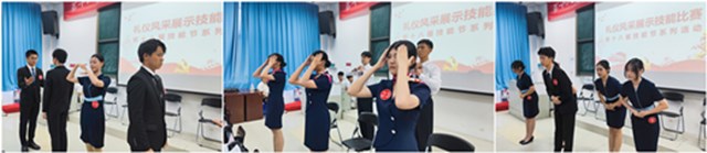 6月9日,广州市交通技师学院第十八届技能节系列竞赛活动之服务礼仪风采展示技能比赛在学院荔湾校区举行,广东省轻工业技师学院李磊主任,广州市交通技师学院公共基础系张虎成主任,交通运输产业系吴显强主任、张小利副主任,学院沙太礼仪队、航空服务专业同学参加了本次活动。