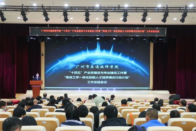 2026年1月9日,广州市交通技师学院召开“十四五”产业系建设与专业建设工作暨“推进工学一体化技能人才培养模式行动计划”工作总结会议。学院专职党委副书记伊晓浏、副院长刘海波,各教学线中层干部及全体专兼职教师参会,共同回顾了学院“十四五”期间的教学教研工作成果,谋划未来发展方向。