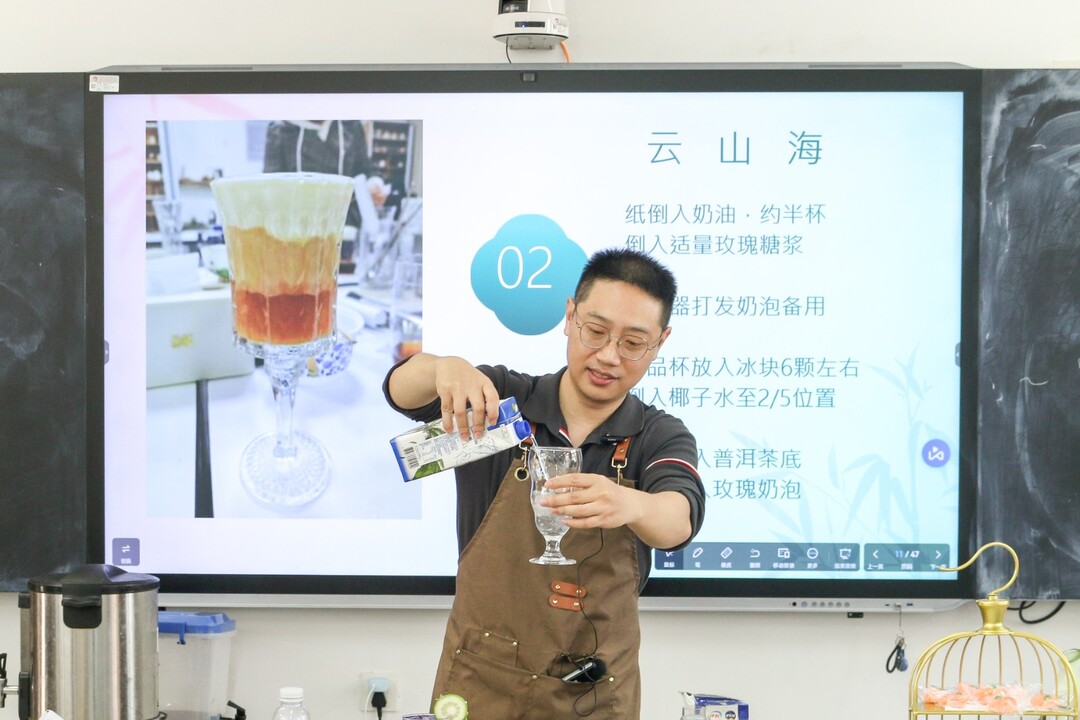 本次活动以新式调饮茶为核心载体,将传统茶文化与现代调饮技艺创新融合。活动特邀广东省茶文化研究院培训部部长、国家高级茶艺师、高级评茶师罗方和高级茶艺师、调饮师考评员郭罗喆进行授课。