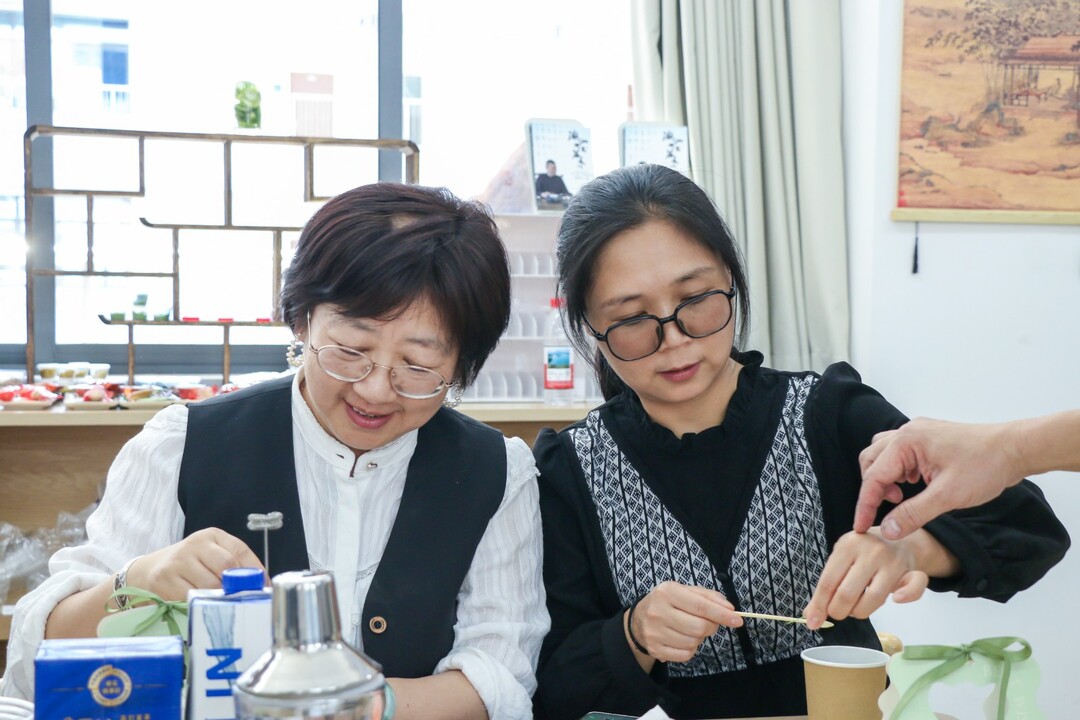 茶歇交流环节中,教工们围坐品尝自制调饮茶作品、畅谈交流制作心得,在轻松愉悦的气氛中舒缓工作、学习压力,增进同事情谊,营造和谐融洽的校园文化氛围。