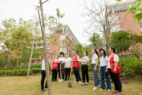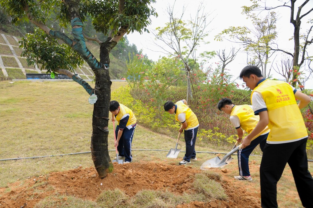 学院党委副书记、院长梁登为活动致辞,他指出,建设绿美校园,不仅是美化环境、提升品质的现实需要,更是以环境育人、以文化润心,培育担当民族复兴大任时代新人的长远之举。希望全体师生:一是提高站位,做生态文明的坚定传播者,将生态文明教育融入教育教学全过程;二是躬身实践,做绿美校园的主动建设者,精心管护、长久守护,确保“栽一棵、活一棵、成一片”;三是厚植情怀,做匠心育人征程的奋力开拓者,将绿色理念与工匠精神融入育人全过程,以青春之我助力绿美广东。