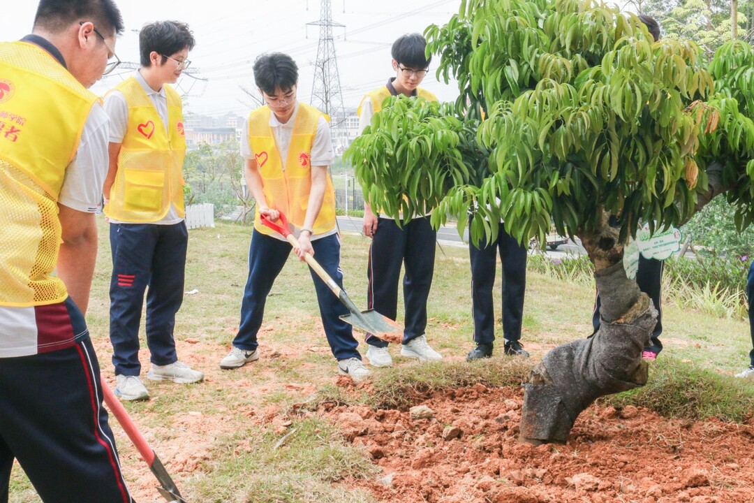 一株新苗,一锹厚土,一瓢清水,种下的是希望,承载的是未来。此次活动不仅为校园增添新绿,更让生态文明理念在劳动实践中扎根。未来,学院将持续以党建为引领,深化生态教育,推动“绿美校园”与人才培养深度融合,为“绿美广东”贡献交通力量。期待来年荔园成荫炮仗花红,共绘人与自然和谐共生的美好画卷!
