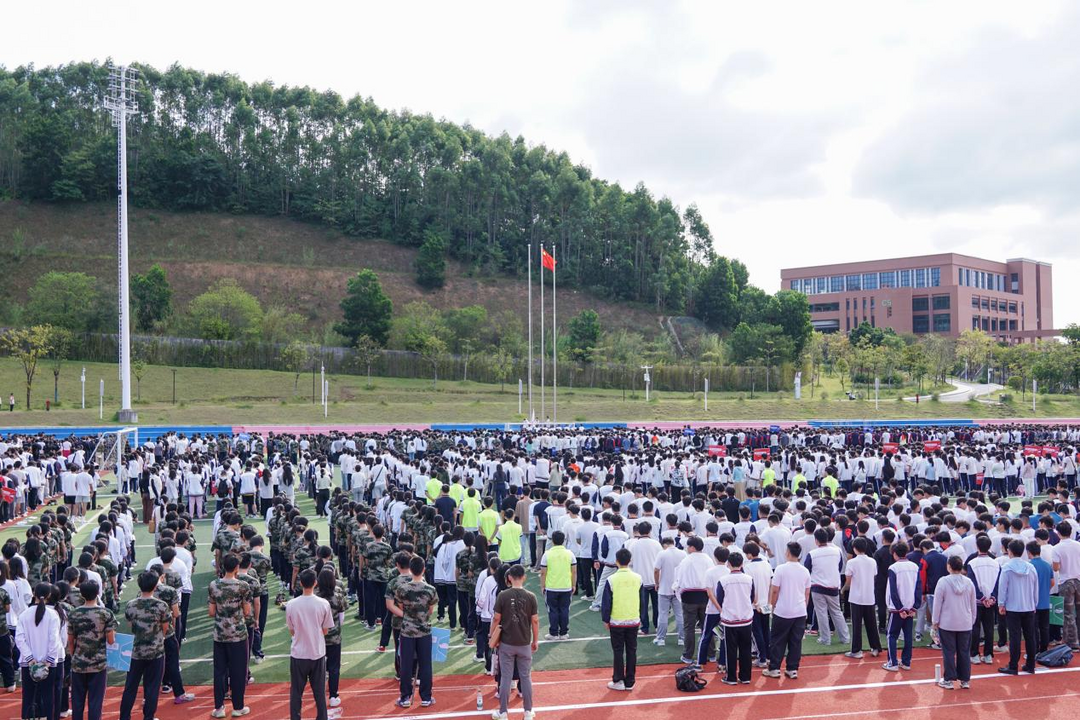 国歌奏响凝众志,旌旗飞扬启新程。大会在庄严的国歌声中拉开帷幕。此次大会由学生工作处杨宇峰主任、姚柱老师分别在科教城校区和白云校区主持。学院领导、广州市白云区人武部教官、相关职能部门负责人、各系部负责人、学管工作人员、全体新生班主任以及2025级新生共3000余人出席。
