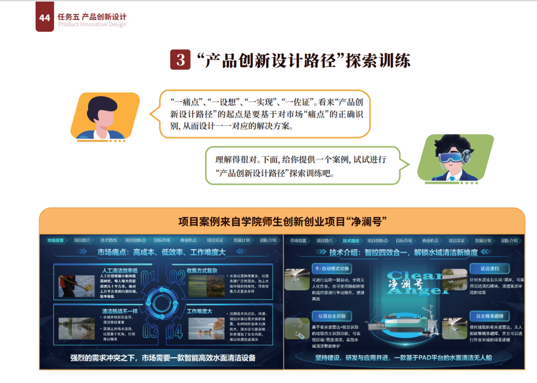 荣誉与成绩的背后,是学院长期以来对创新创业教育的深耕细作。近年来,学院以创新人才培养需求为导向,紧扣产业需求、人工智能发展、综合素养提升要求,构建契合我院学情的 “三阶段 11 模块 42 技能要素创新育人”智慧专创课程体系。该体系融入人才培养方案、国家政策、产业数据、校企合作资源与专家智库,结合学院六大产业系专业群特色,以高质量创新创业孵化项目为抓手,推动更多创新创业项目的“金点子”方案在专业课程的学习过程中诞生,例如:《智慧专创课程》在我院轨道与先进制造系的专业课试点中,创造性地应用本届“广东中华职教杯”一等奖项目“净澜号”作为课程资源,引导并孵化出《义管仿生关节驱动》《大白-便携式全自动给药仪》等多项学生创新创业“金点子”创意方案,推动专业课与创新创业教育深度融合,促进复合型技术技能创新人才培养。